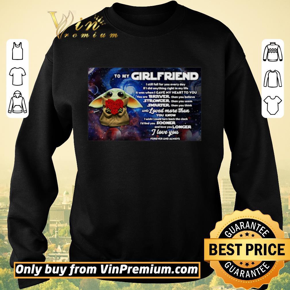 Awesome Star wars baby yoda hug heart to my girlfriend I love you shirt sweater, Hoodie, Sweater, Longsleeve T-Shirt For Men and Women