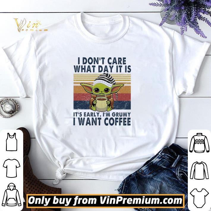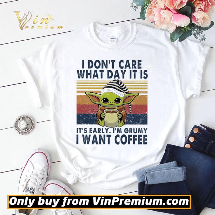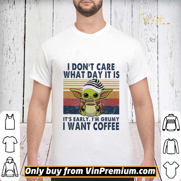 Baby Yoda I Don’t Care What Day It Is It’s Early I’m Grumy I Want Coffee shirt sweater, Hoodie, Sweater, Longsleeve T-Shirt For Men and Women