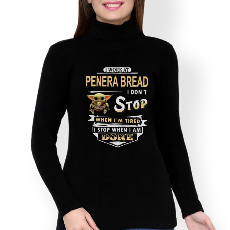 Hot Baby Yoda Hug I Work At Panera Bread I Don’t Stop When I’m Tired I Stop When I Am Done Shirt, Hoodie, Sweater, Longsleeve T-Shirt For Men and Women