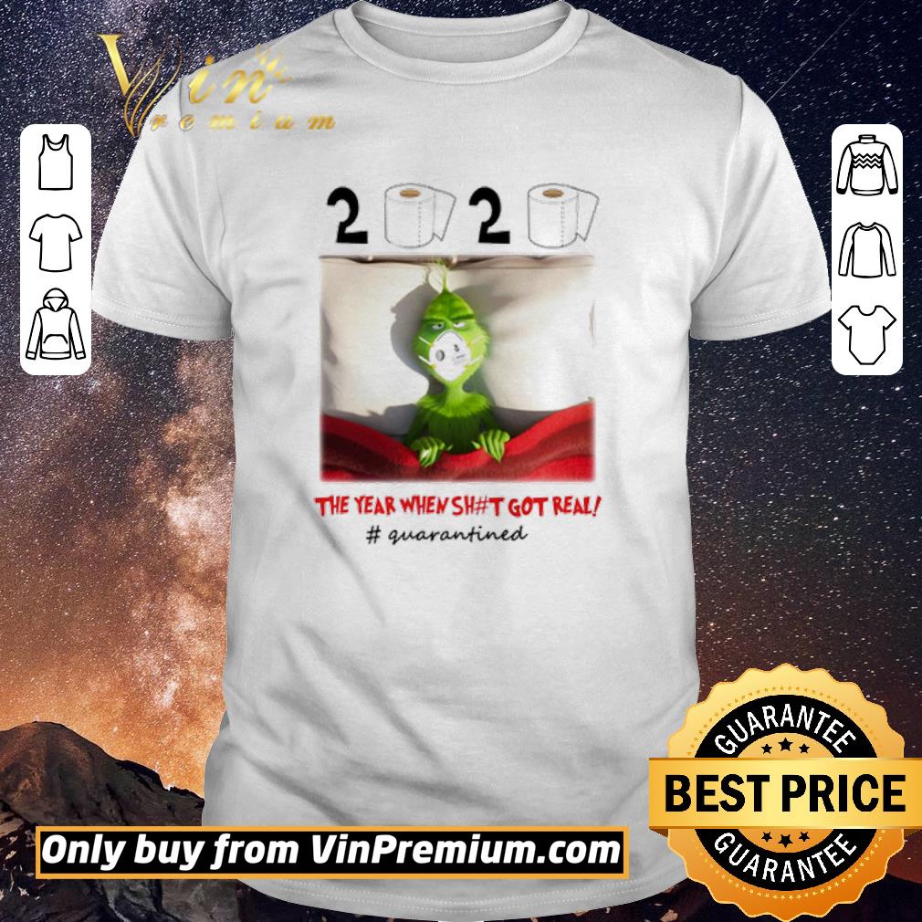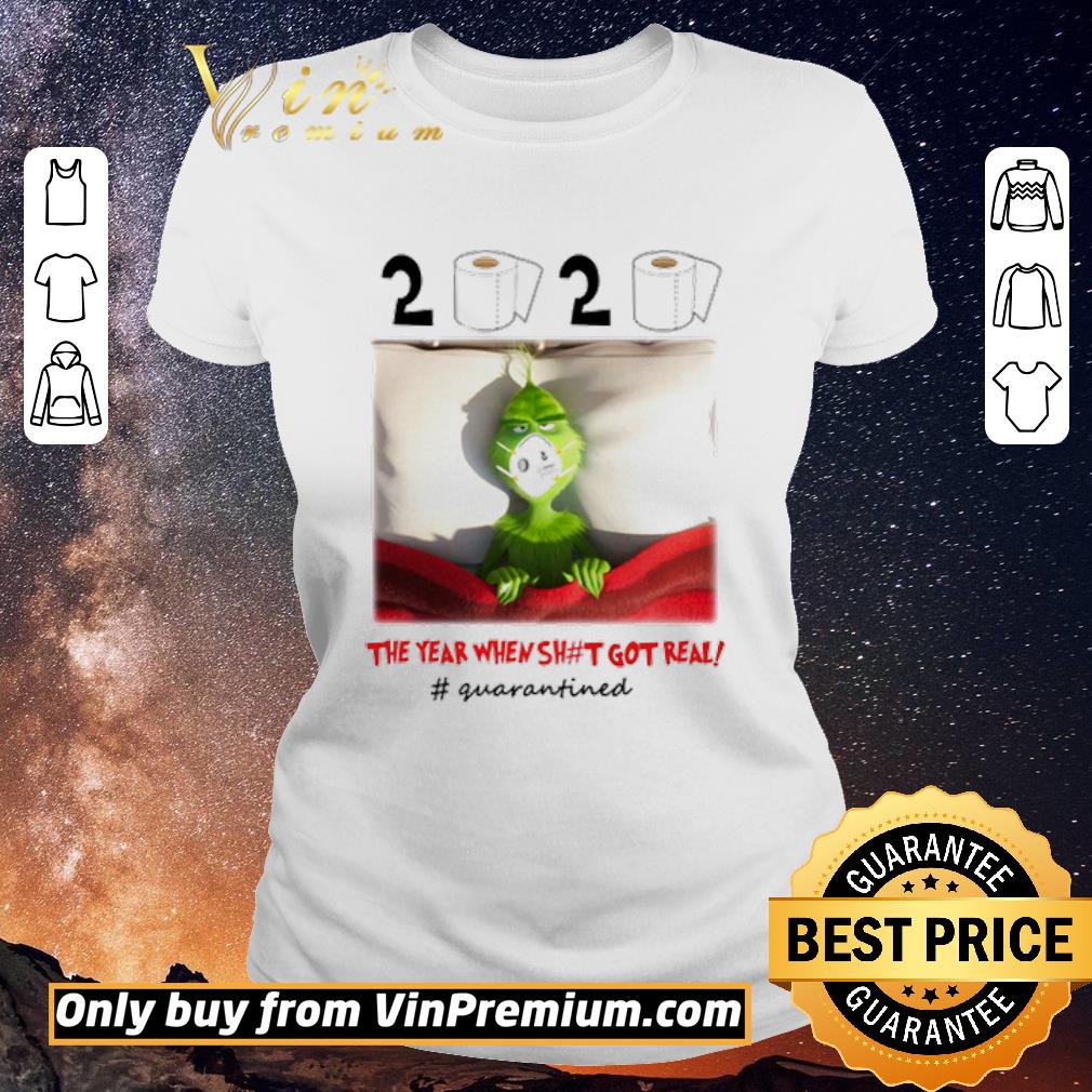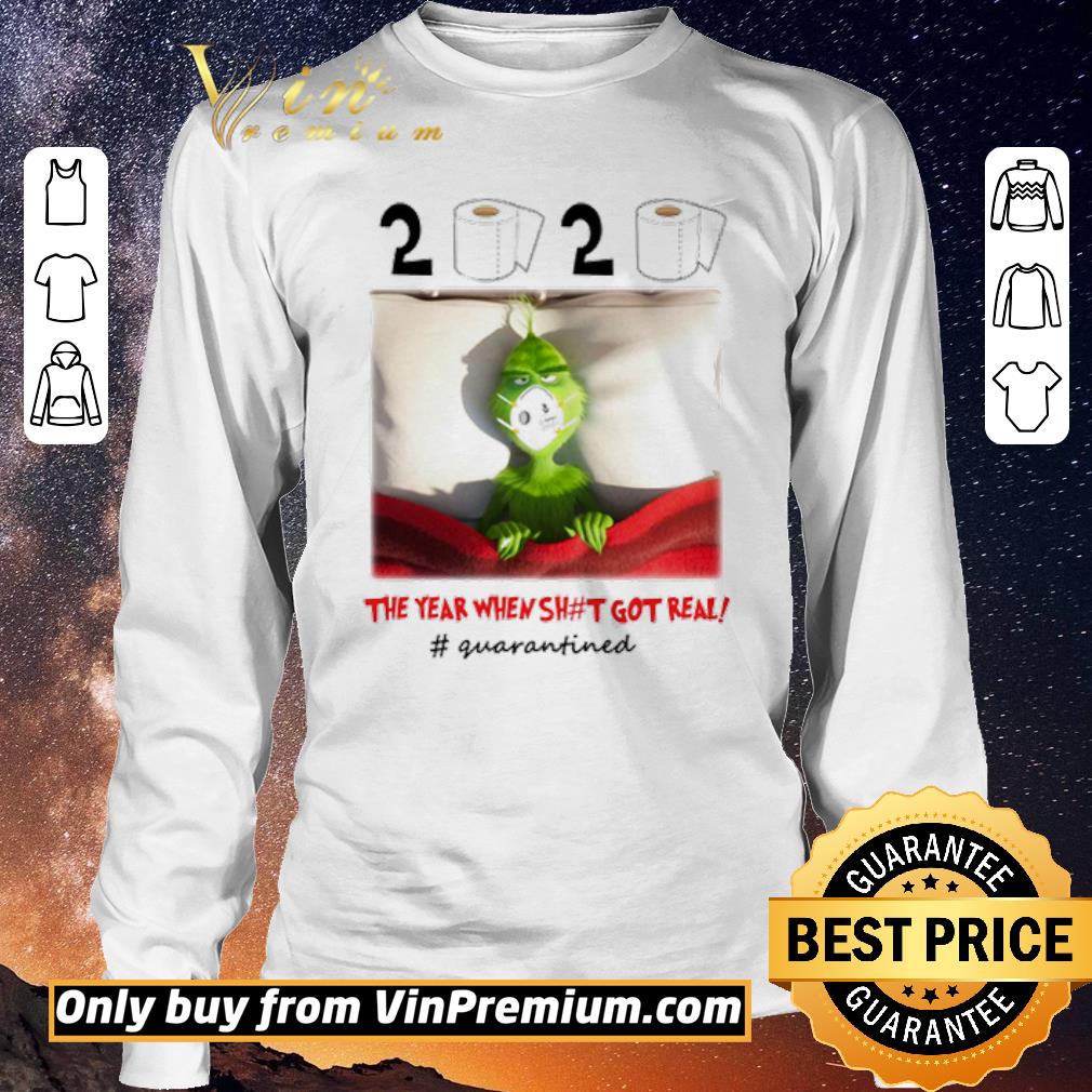 Nice Grinch wearing mask 2020 the year when shit got real #quarantined shirt sweater, Hoodie, Sweater, Longsleeve T-Shirt For Men and Women