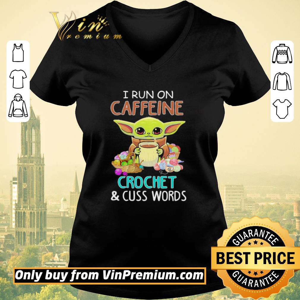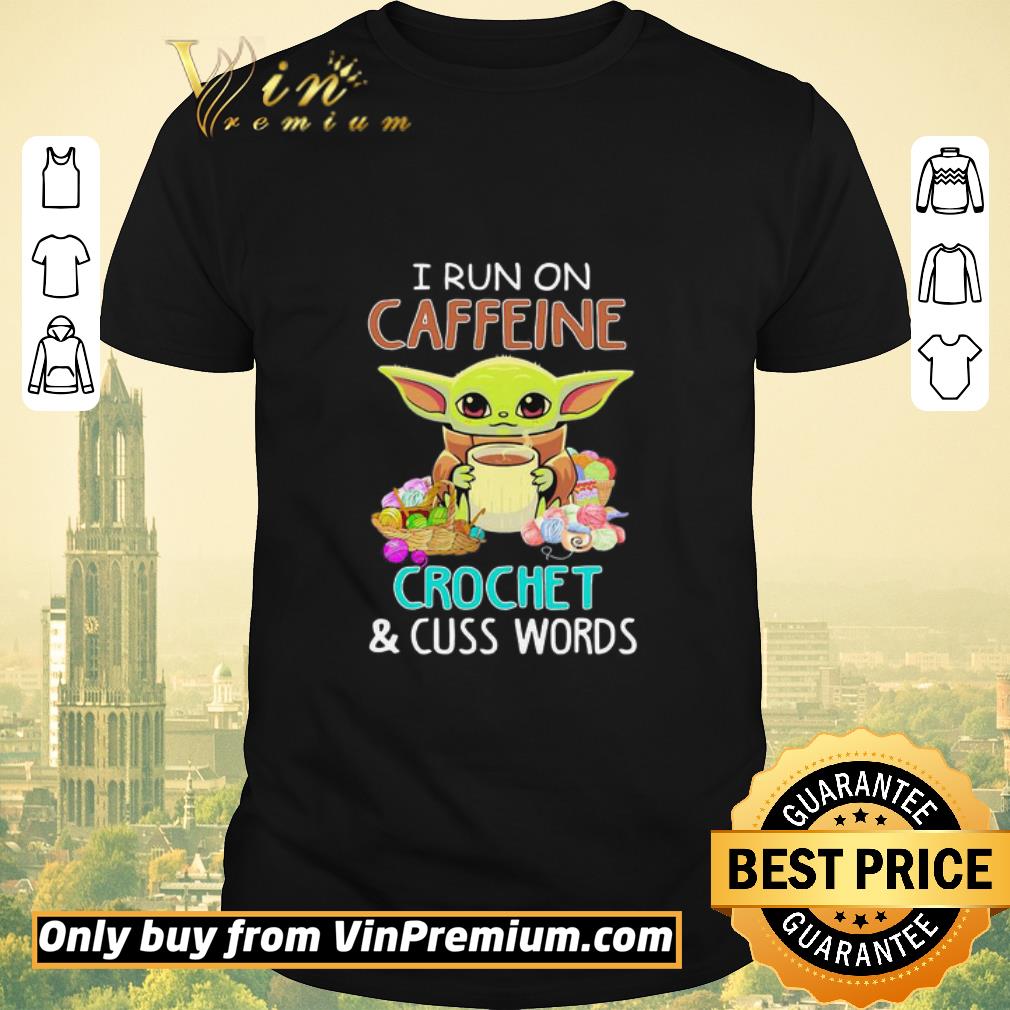 Pretty Baby yoda i run on caffeine crochet and cuss words shirt sweater, Hoodie, Sweater, Longsleeve T-Shirt For Men and Women
