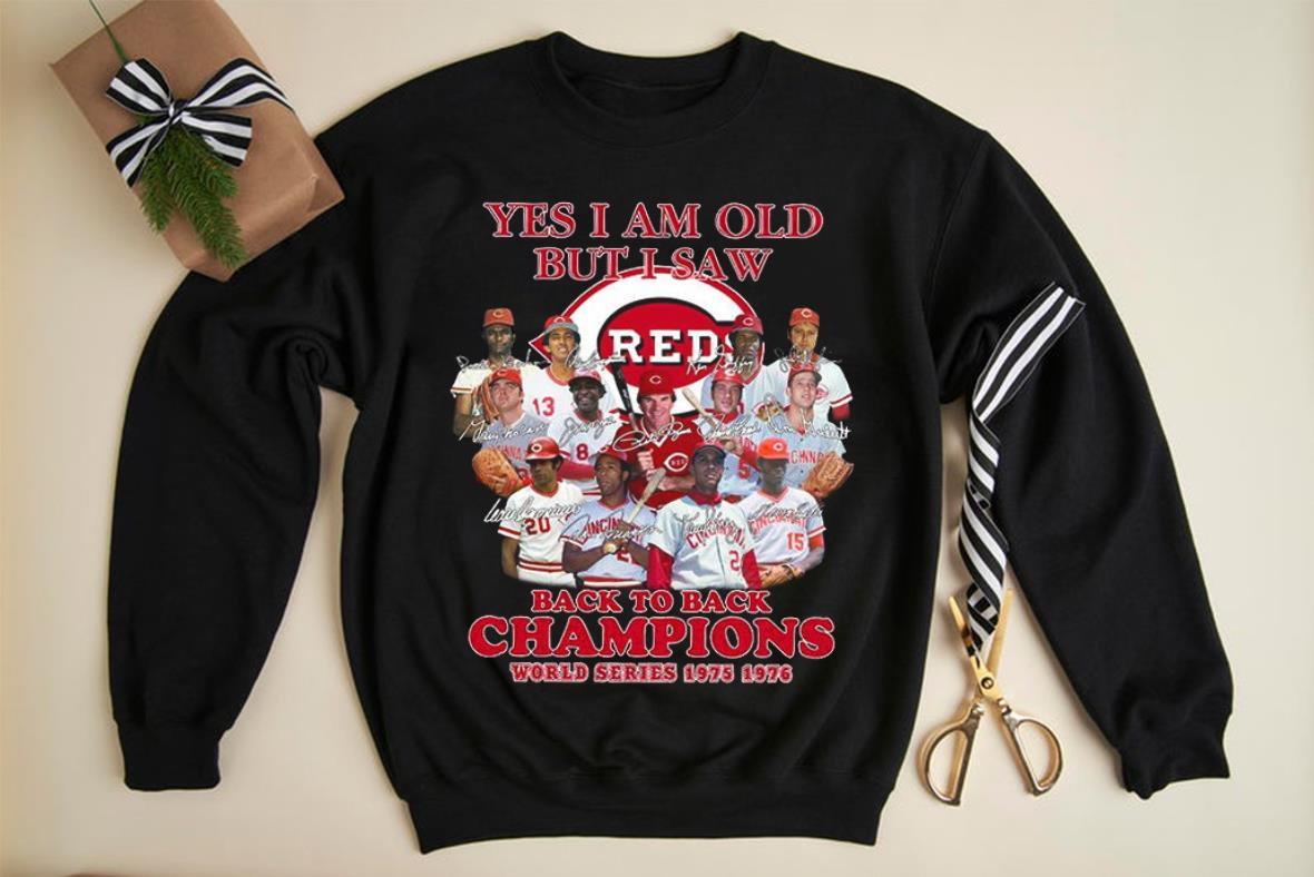 Vintage Yes I Am Old But I Saw Red Back To Back Champions World Series 1975-1976 Signatures Shirt, I Saw Red Back To Back Champions Shirt, Hoodie, Sweater, Longsleeve T-Shirt For Men and Women